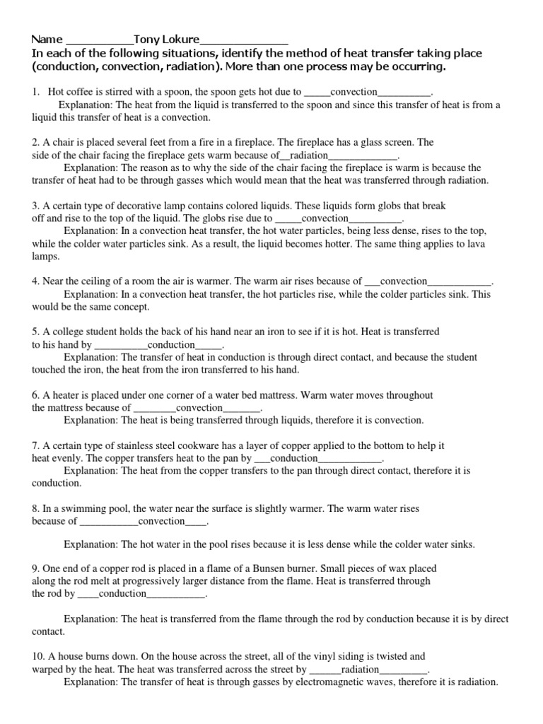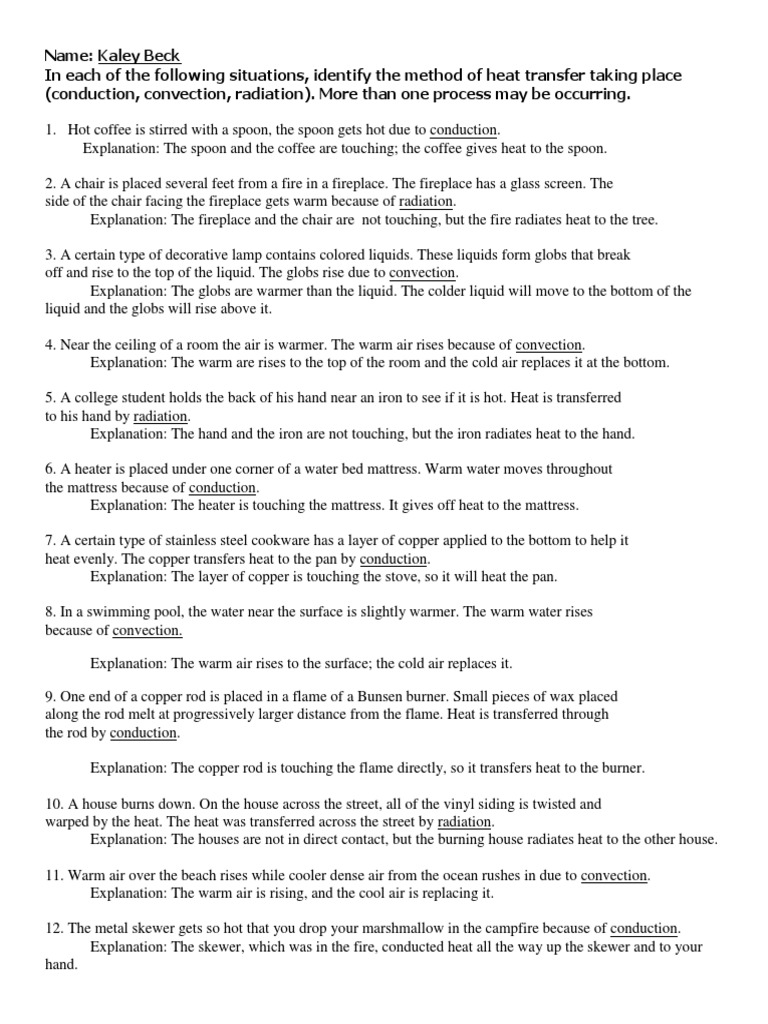 Worksheet Methods Of Heat Transfer Conduction Convection And Radiation Answers Nidecmege