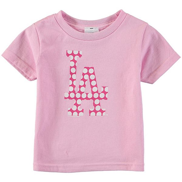 Toddler Girls Soft As A Grape Pink Los Angeles Dodgers Polka Dot Logo T Shirt